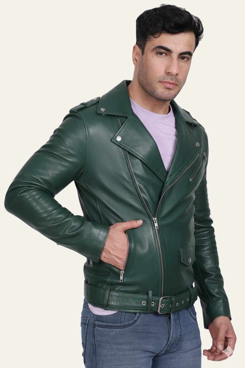 Made from high-quality genuine leather, the Victor Men Green Leather Jacket offers exceptional strength and longevity. The leather is soft yet durable, ensuring that the jacket molds to your body with wear, delivering a custom and comfortable fit over time. Its smooth finish and premium texture give it a sophisticated appearance suitable for various occasions and seasons.